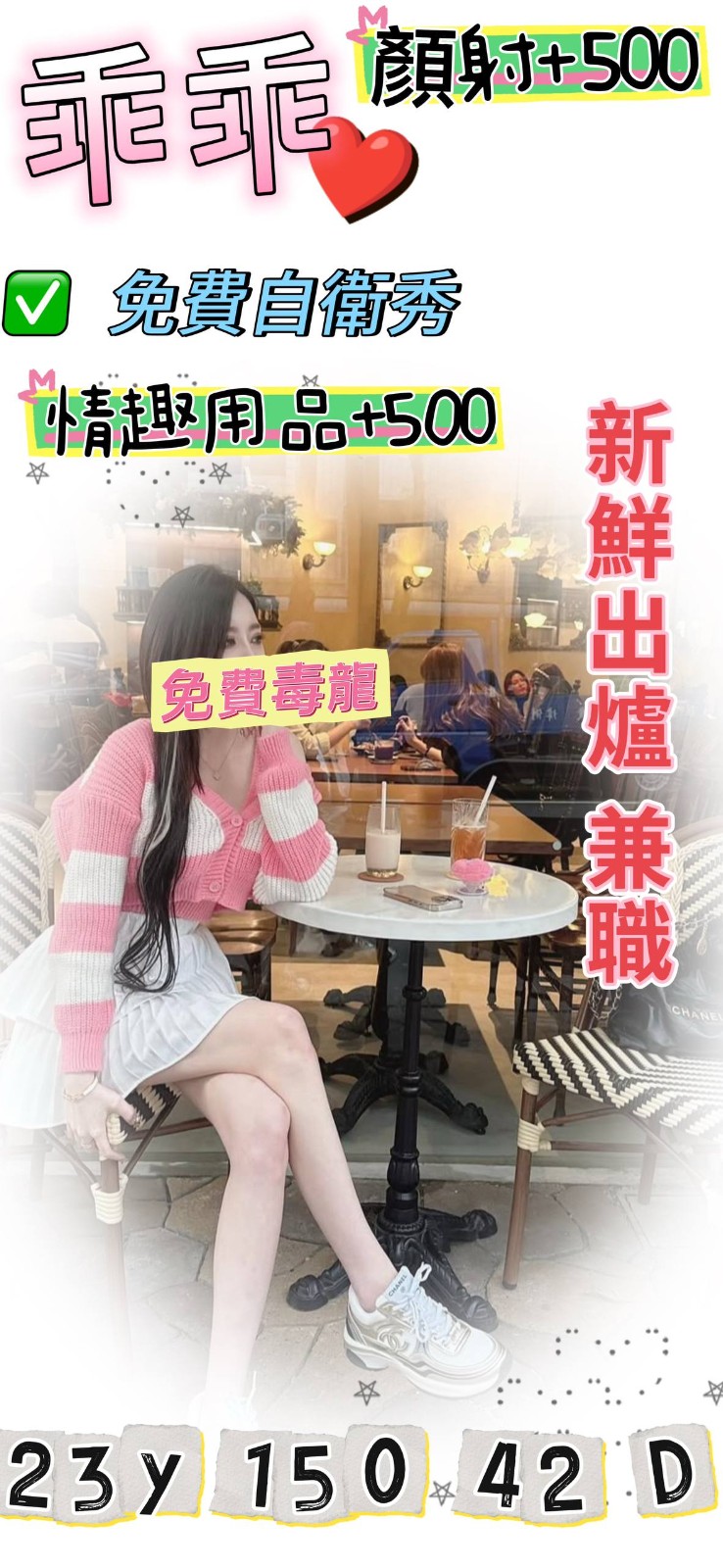 俏皮小辣妹,初次兼職,帶點羞澀,粉粉乳頭和穴穴,很敏感喔,熟後活潑開朗,好康不要錯過喲,約她絕對不後悔!